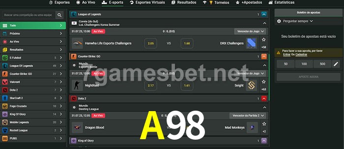 A aposta A98 oferece aos jogadores a experiência mais conveniente de apostas em eSports!